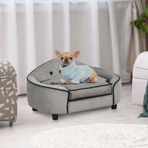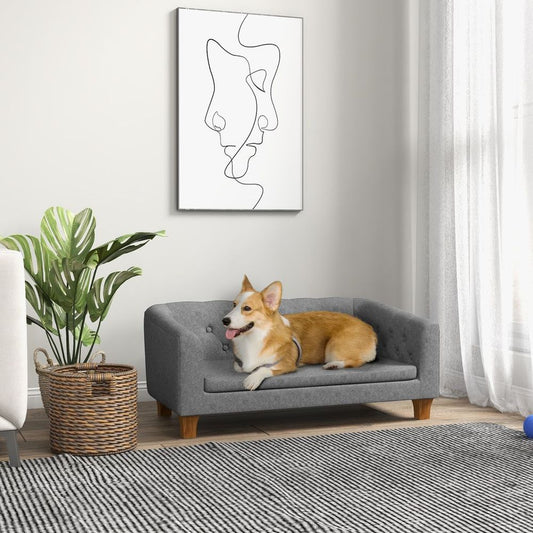 PawHut Dog Sofa Bed Raised Couch with Wooden Frame and Soft Cushion, Grey